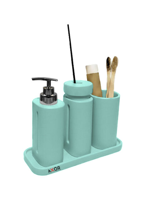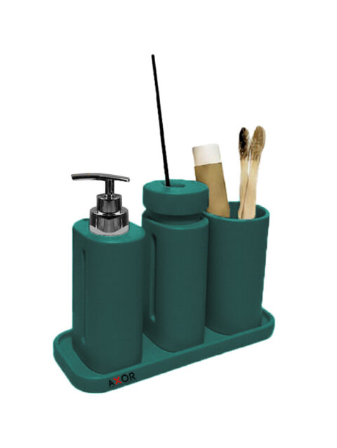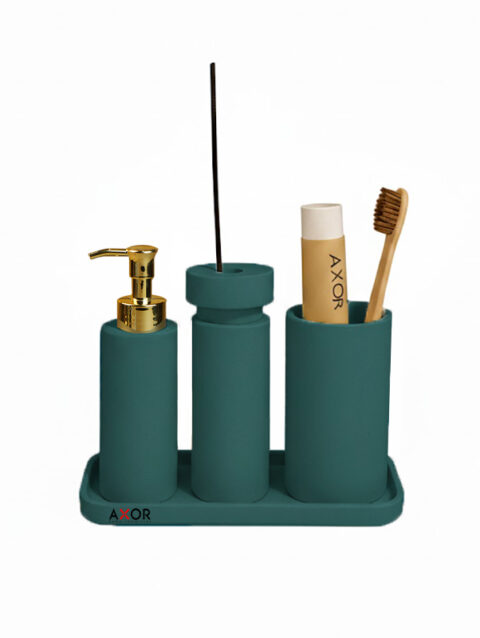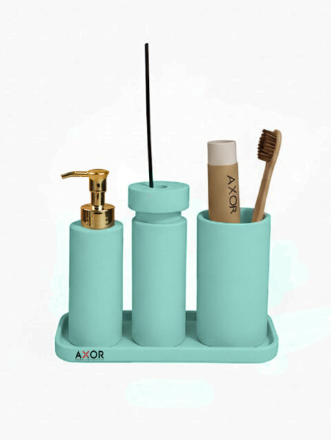ست سرویس بهداشتی جا مایعی جا عطری سنگی چهار تکه آکسور (AXOR) سبزآبی کد Ssjja