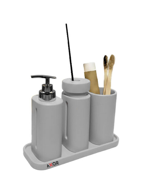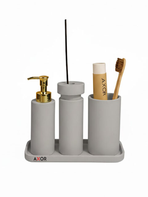 ست سرویس بهداشتی جا مایعی جا عطری سنگی چهار تکه آکسور (AXOR) طوسی کد Ssjjt